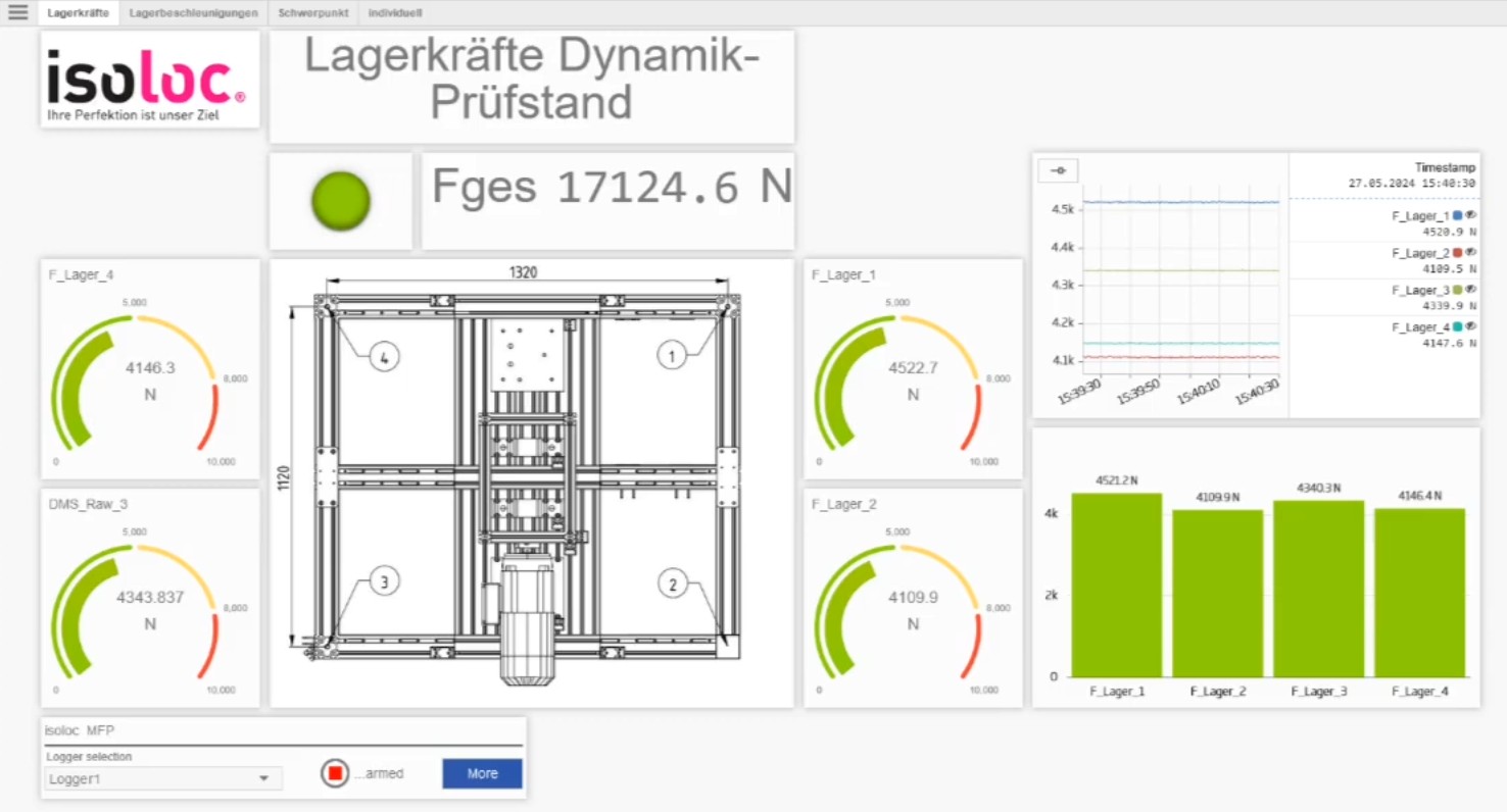 Maschinenüberwachung mit iSense bedeutet, das tatsächliche Verhalten einer Maschine unter realen Bedingungen sichtbar zu machen. Das System erfasst schwingungstechnische Größen sowie statische und dynamische Lasten direkt dort, wo sie entstehen. Daraus lassen sich Rückschlüsse auf Punktlasten, Lastverteilungen, Schwerpunktverlagerungen und Unregelmäßigkeiten im Betrieb ziehen.