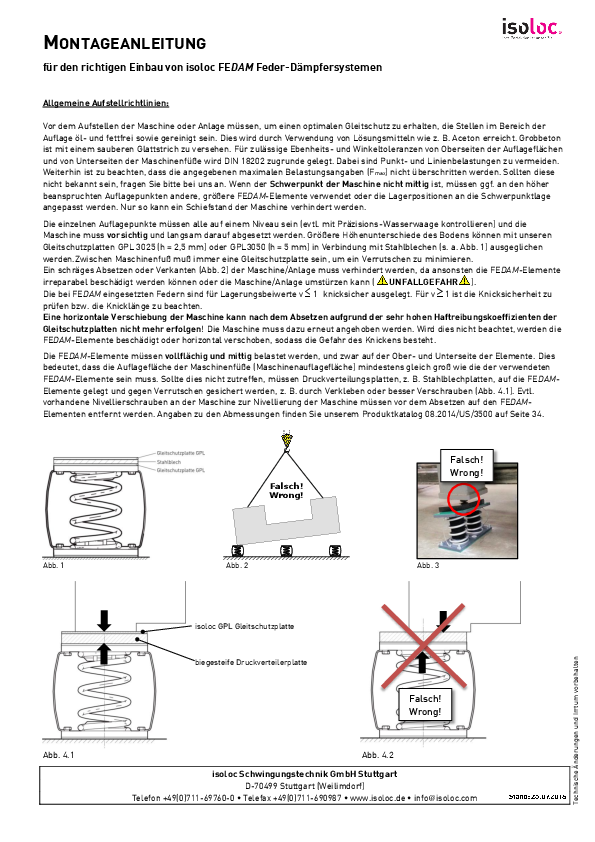 Maschinenlagerungssysteme FEDAM können eingesetzt werden, sowohl zur: