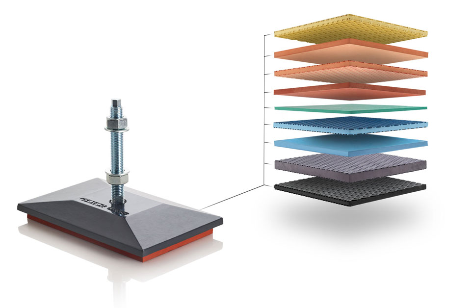 - Bestückung mit Schwingungsisolierplatten IPL.